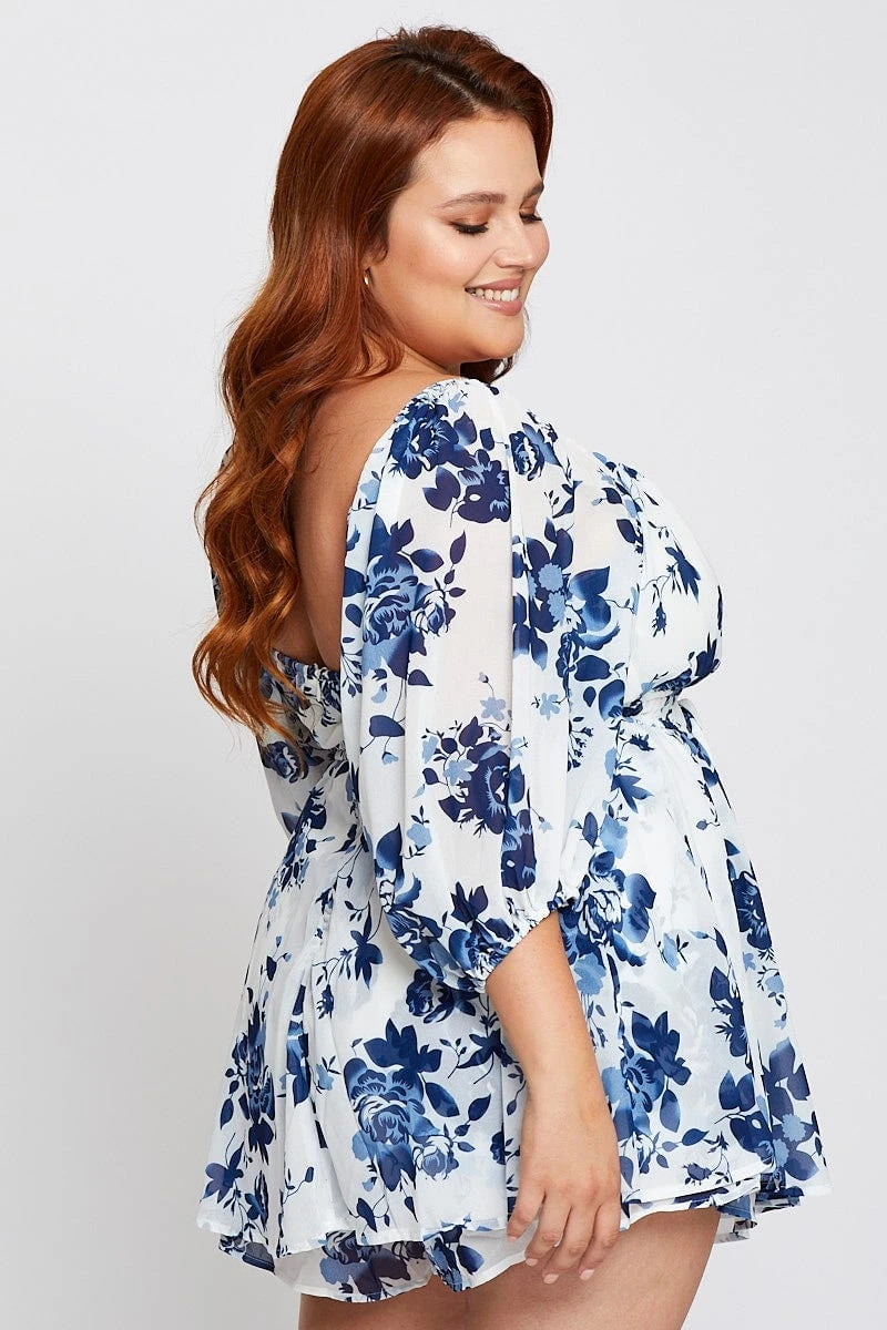 Feature: Floral Print, 3/4 Sleeves, Drawstring Waist, Back Zipper