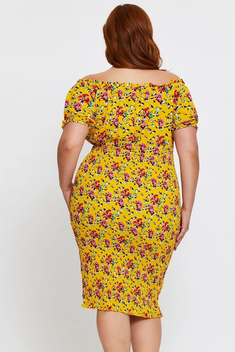 Feature: Floral Print, Tie Detail, Shirred Body, Off The Shoulder