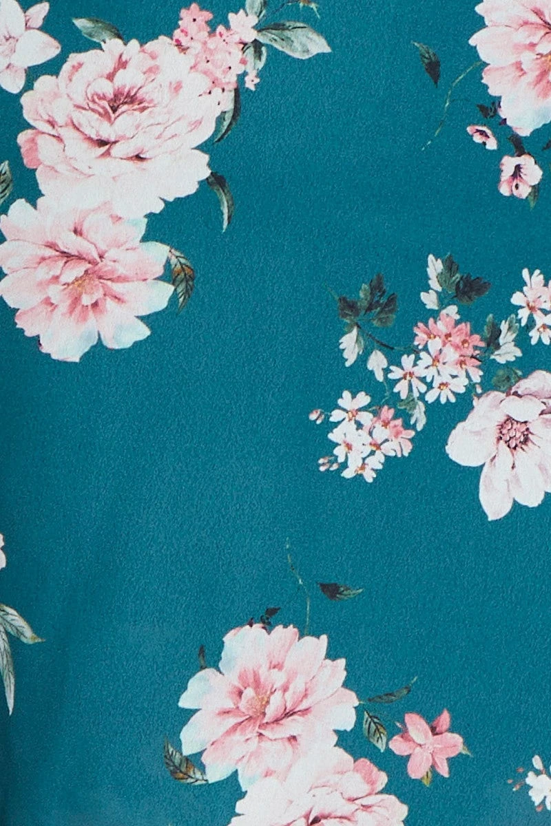 Feature: Floral Print, Side Zipper, Ruffle Hem, Lined
