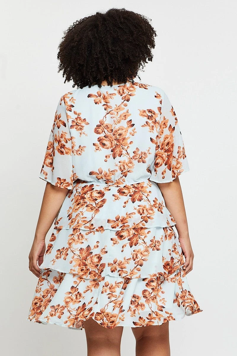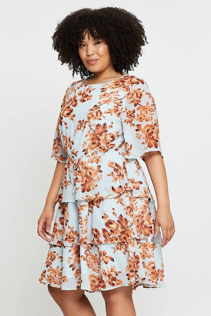 Feature: Floral Print, Layered Detail, Tie Waist, Sheer Sleeves