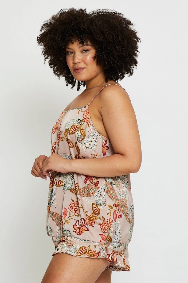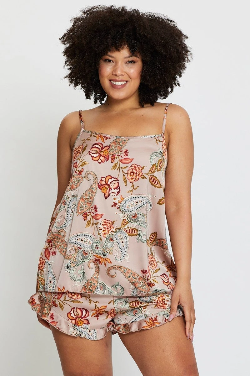 Feature: Floral Print, Satin Finish, Adjustable Straps, Elasticised Waistband