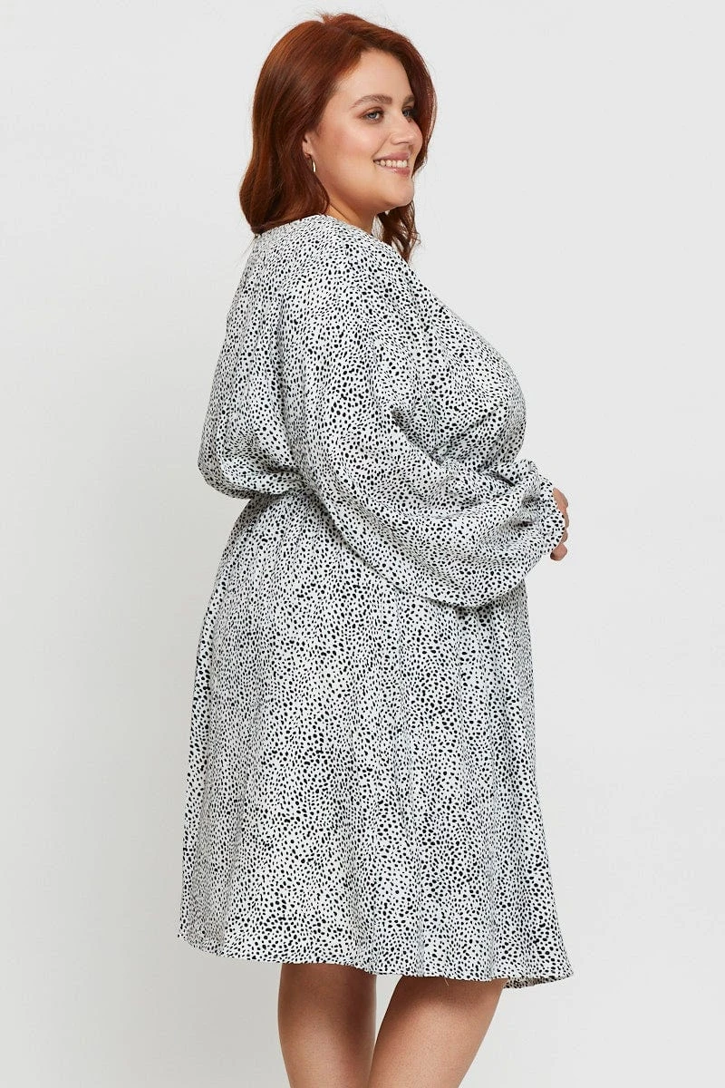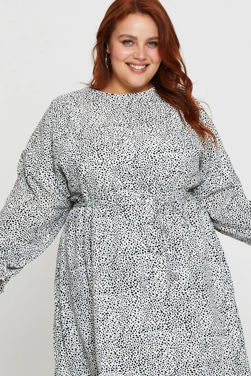 Feature: Button Closure, Geo Print, Waist Tie, Elasticised Sleeves