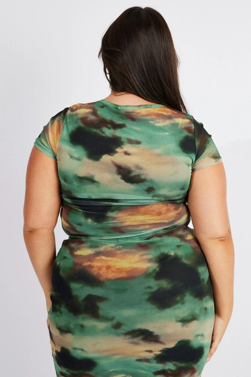 Be the first to review “Green Abstract Mesh Top Short Sleeve Crew Neck Side Ruched” Cancel reply