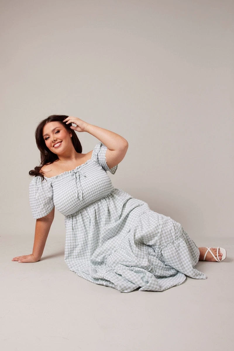 Be the first to review “Green Check Maxi Dress Short Sleeve Shirred” Cancel reply