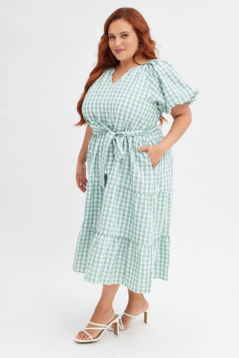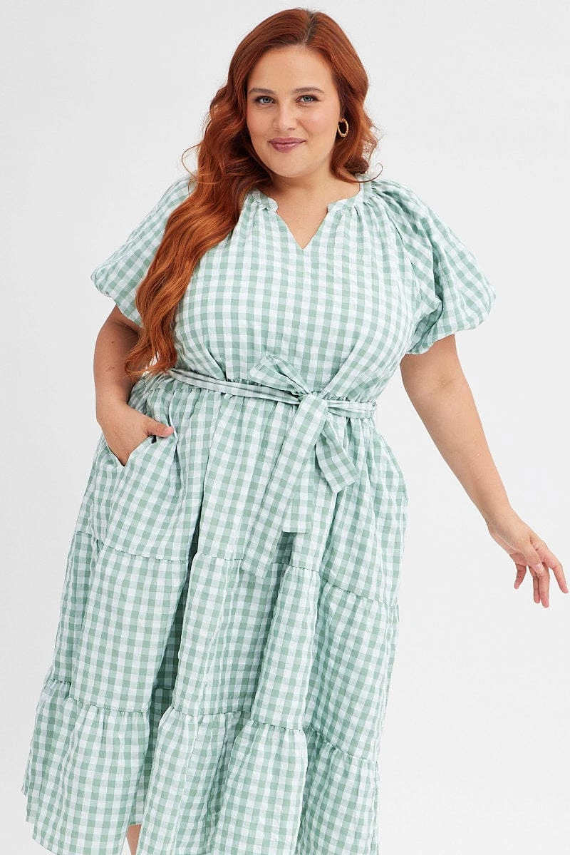 Be the first to review “Green Check Midi Dress Gingham Tie Waist Collared” Cancel reply