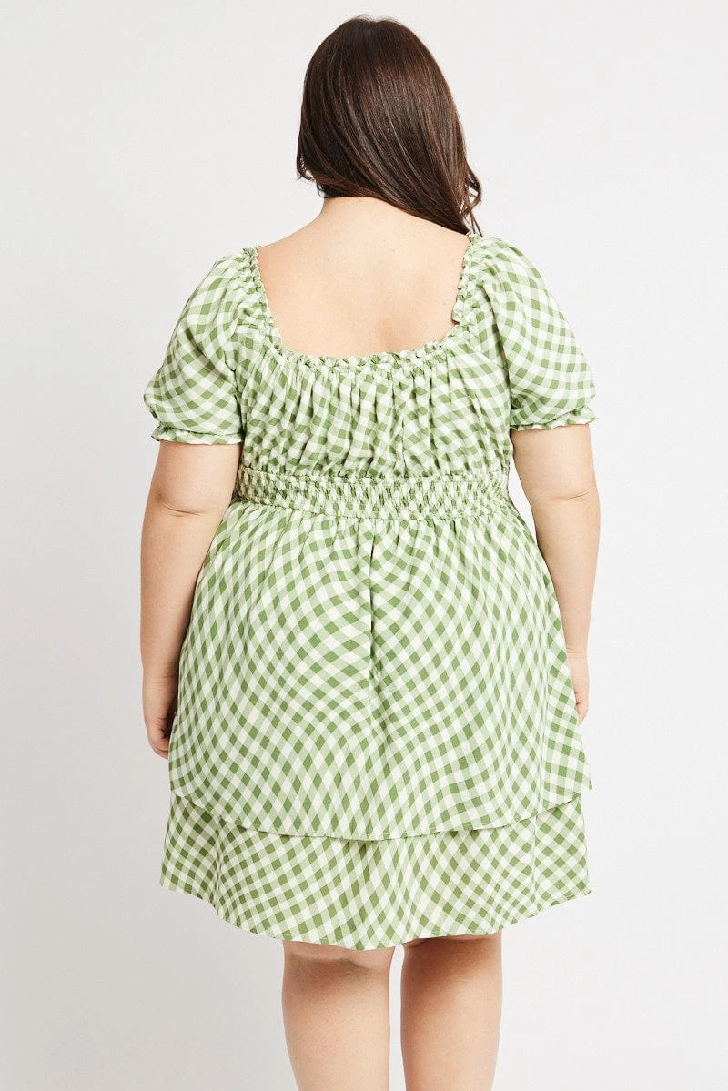 Be the first to review “Green Check Shirred Waist Scoop Neck Minidress” Cancel reply