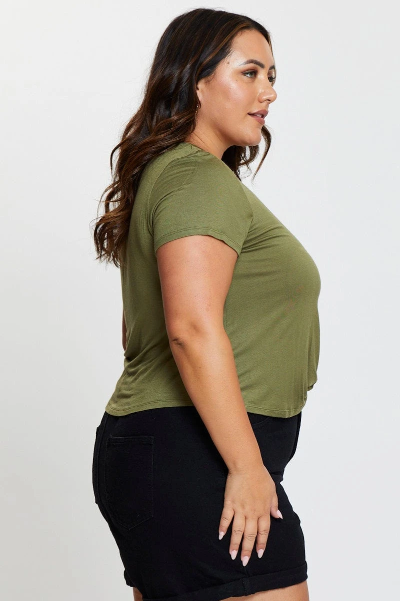 Features: Knot Front, Jersey Fabric, Soft Fabrication, Crew Neck