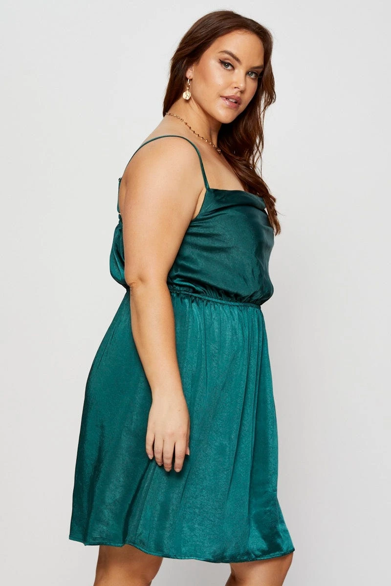 Feature: Satin Look, Cowl Neck, Elasticised Waist, Adjustable Straps