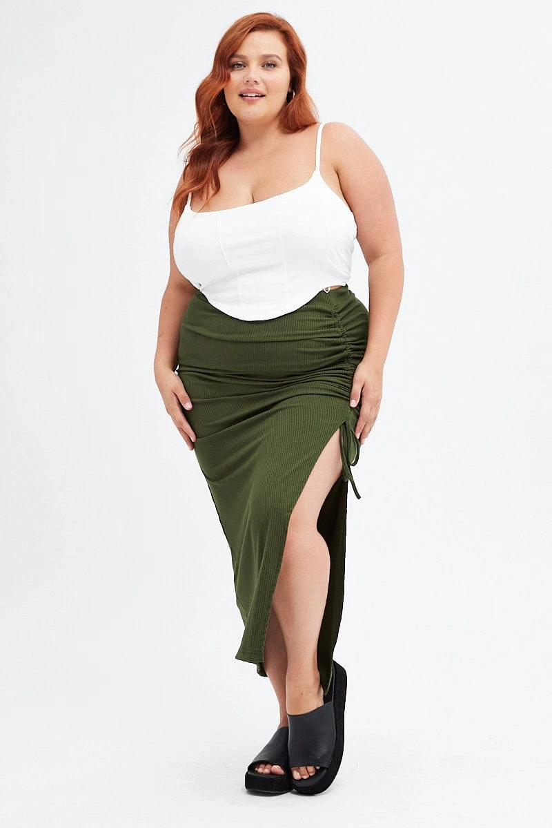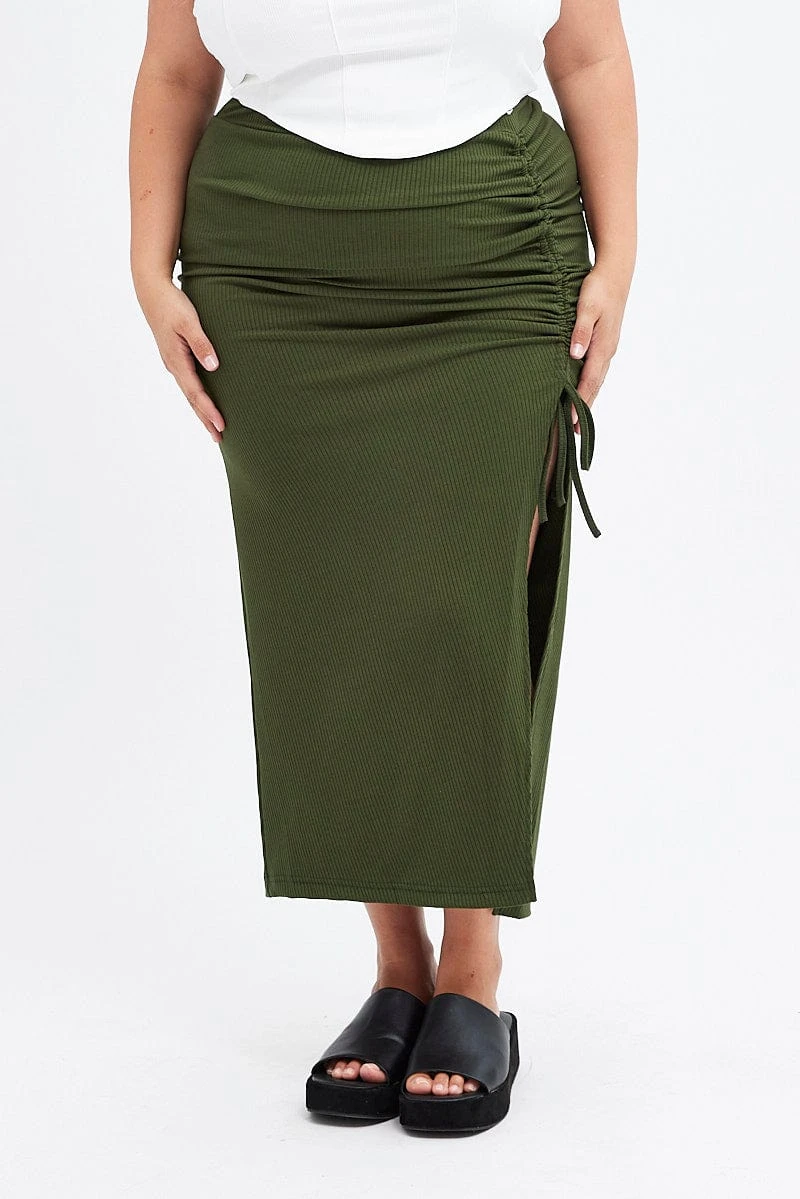 Feature: Ribbed Material, Midi Length, Ruched Side, Side Split