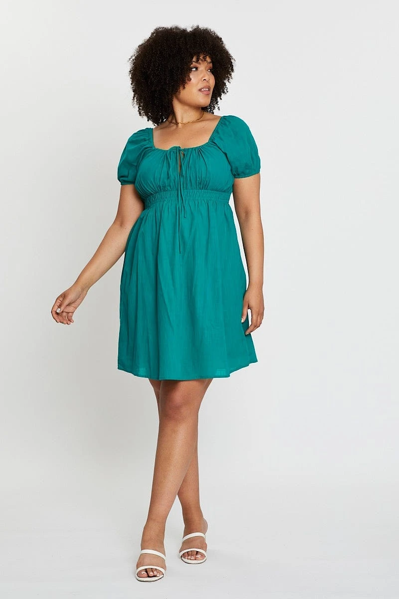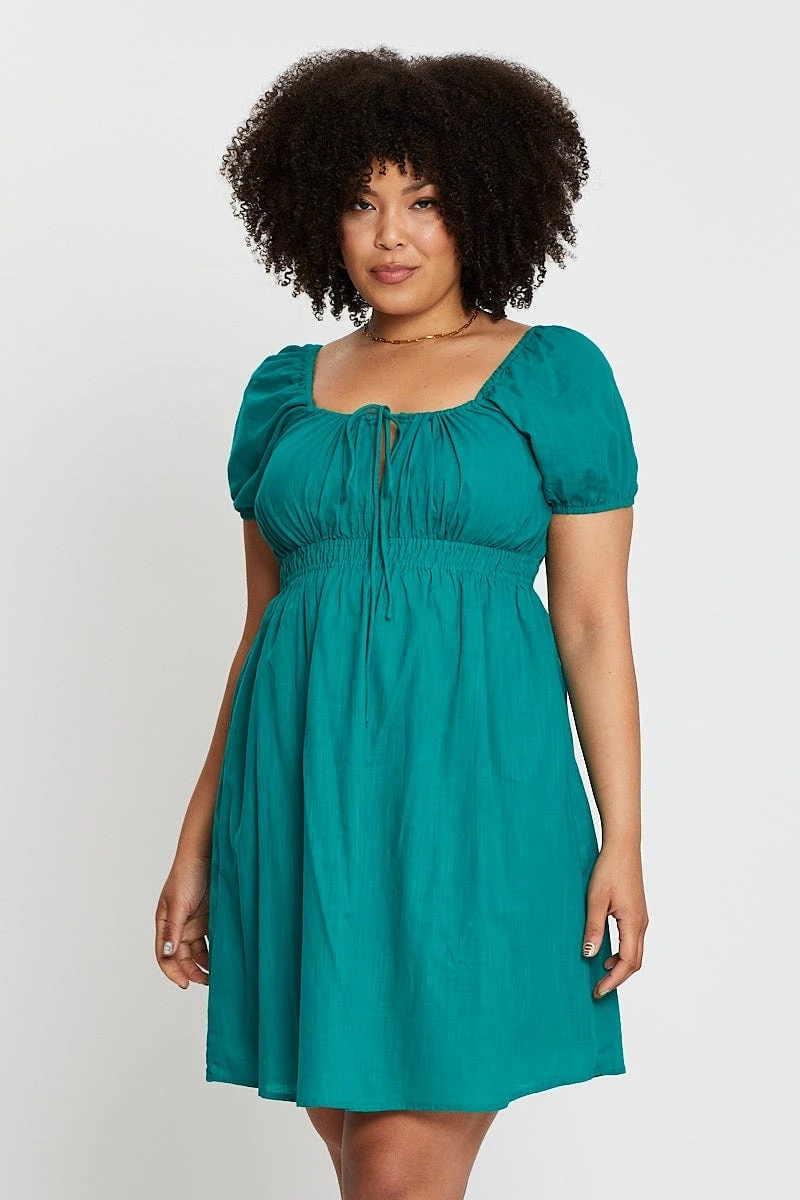 Feature: Tie Detail, Off The Shoulder, Ruched Waist, Puff Sleeves