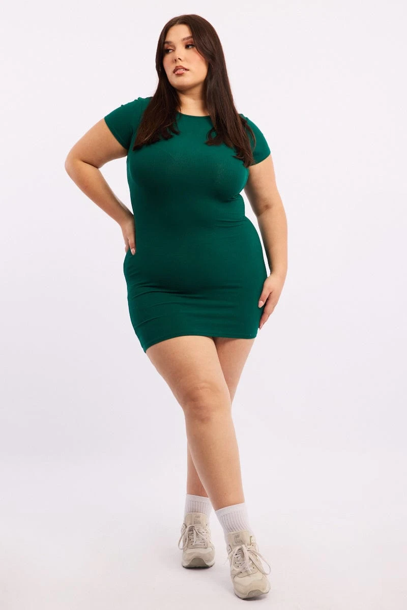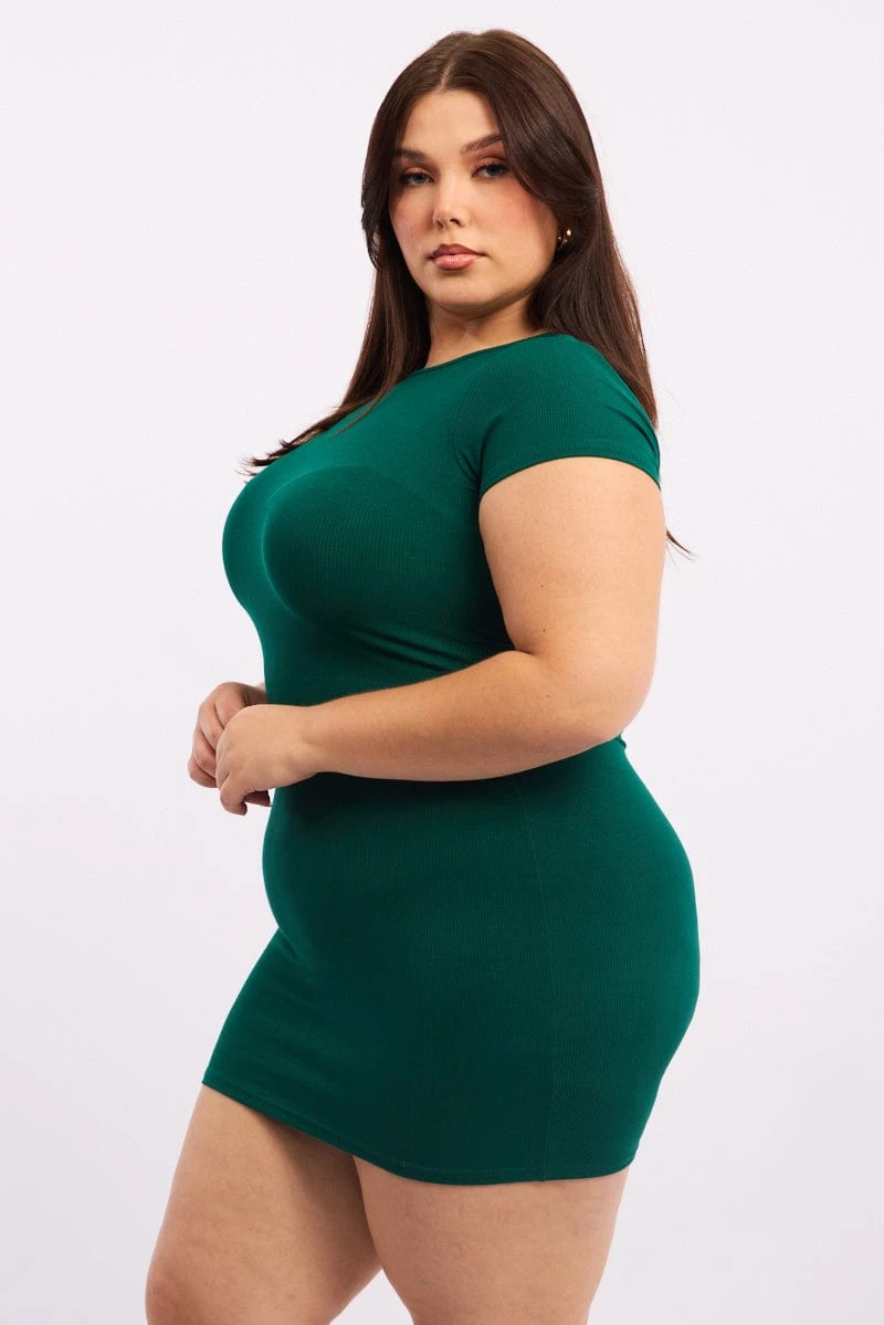 Feature: Short Sleeves, Ribbed Material, Round Neckline, Mini Length