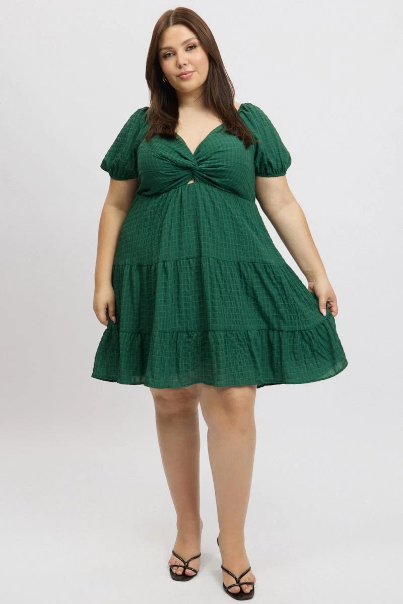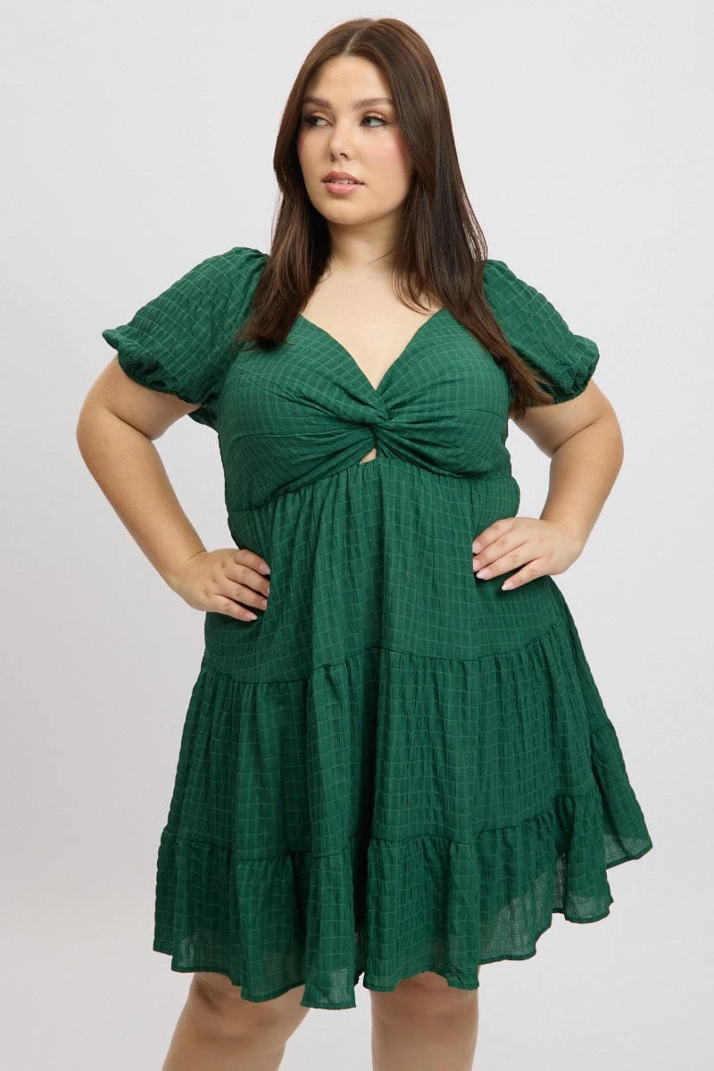 Be the first to review “Green Textured Chiffon Twist Front Puff Sleeve Minidress” Cancel reply
