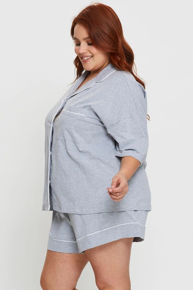 Feature: Piping Detail, Collared Neckline, Short Sleeves, Elastic Waistband