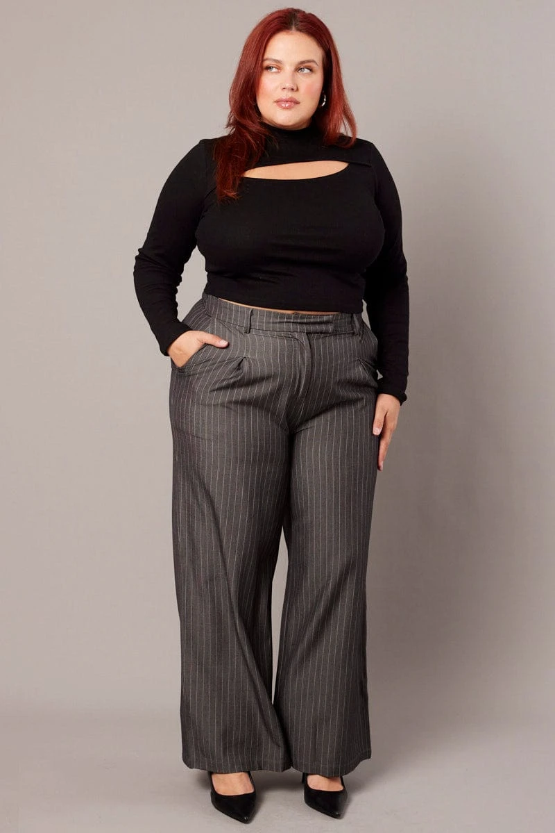 Be the first to review “Grey Stripe Wide Leg Pants High Rise” Cancel reply