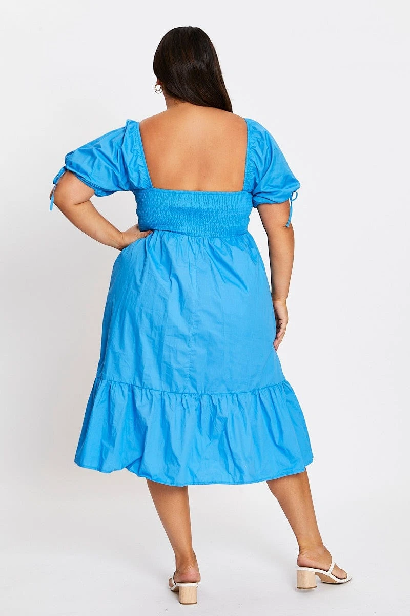 Features: Puff Sleeves, Shirred Back, Sweetheart Neckline, Midi Length