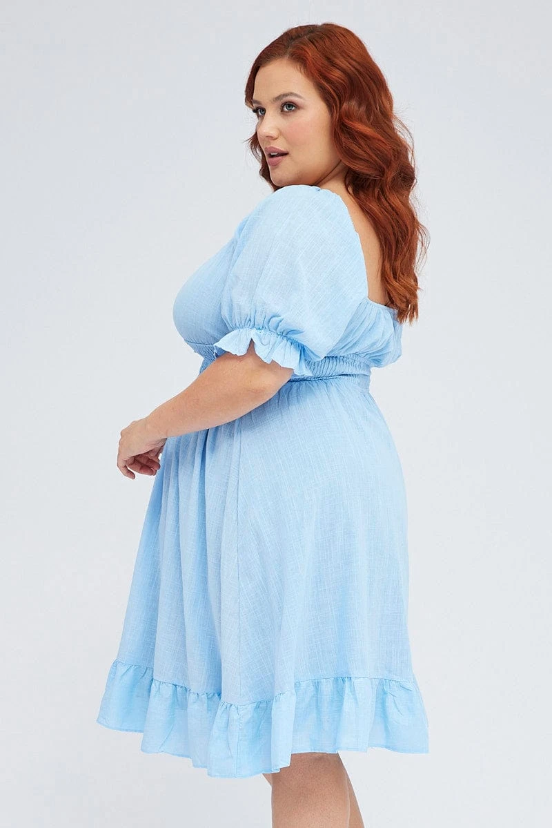 Feature: Keyhole Detail, Puff Sleeves, Shirred Waist, Frill Hem