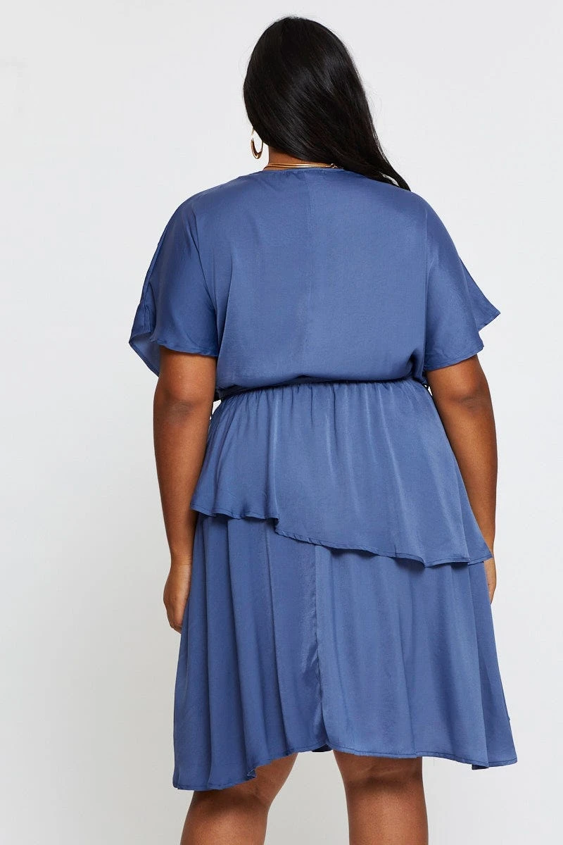 Feature: Tie Waist, Satin Look, Asymmetric Ruffle, Angel Sleeves
