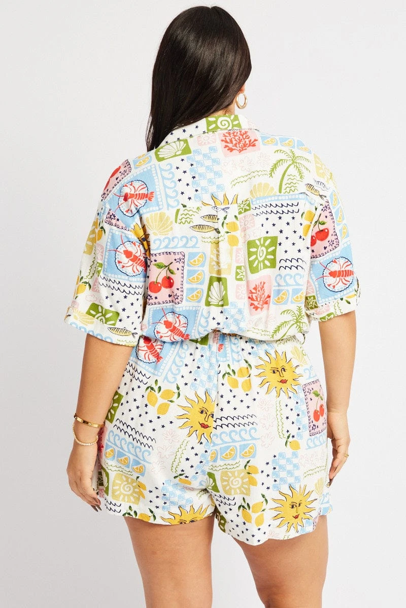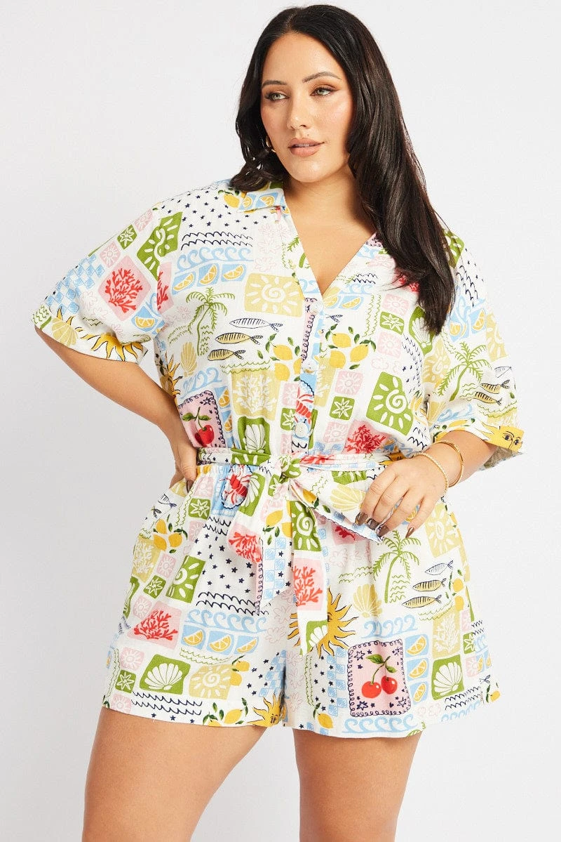 Be the first to review “Multi Abstract Playsuit Short Sleeve Waist Tie” Cancel reply