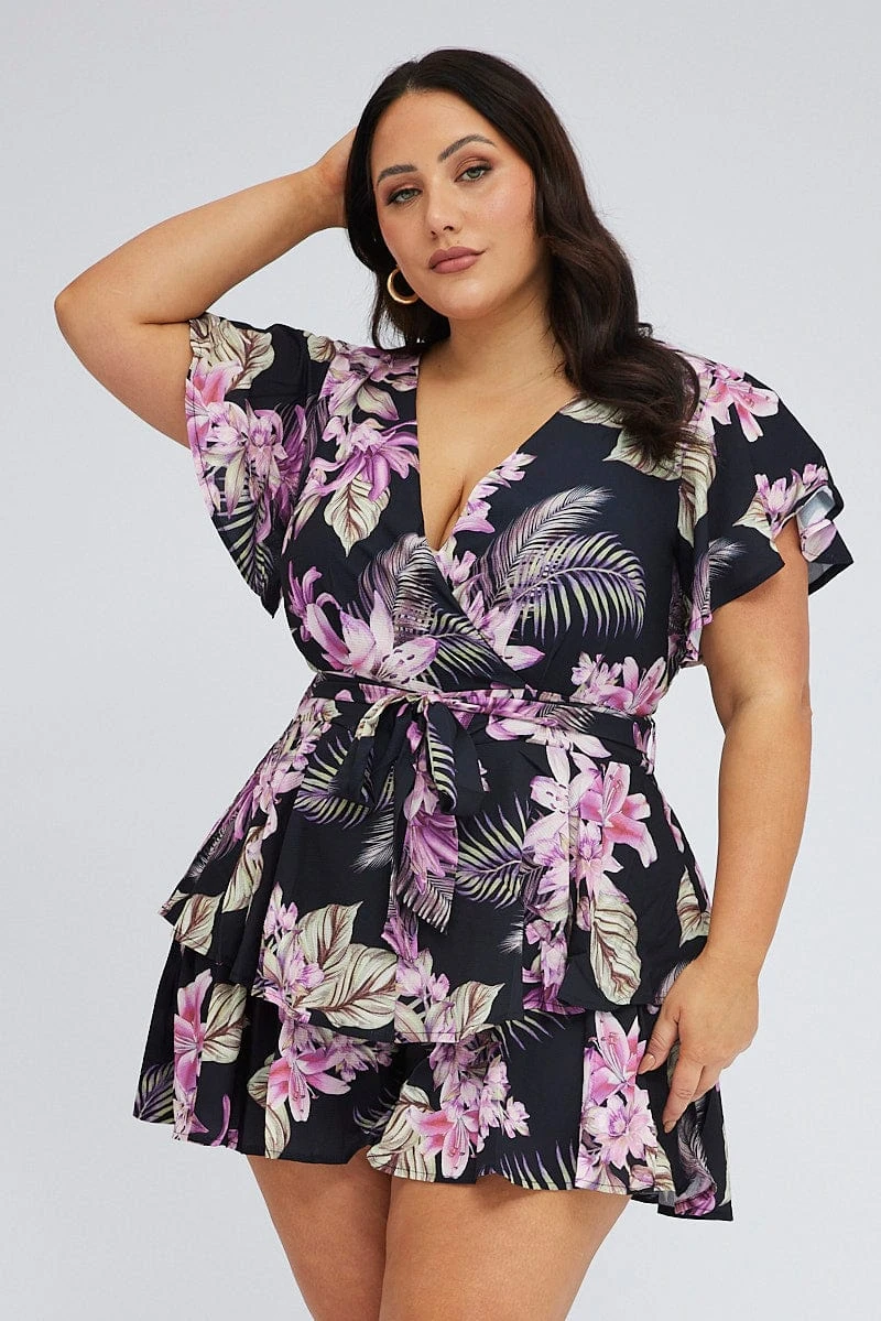 Be the first to review “Multi Floral Short Playsuit Flare Sleeve Crepe Tropical” Cancel reply