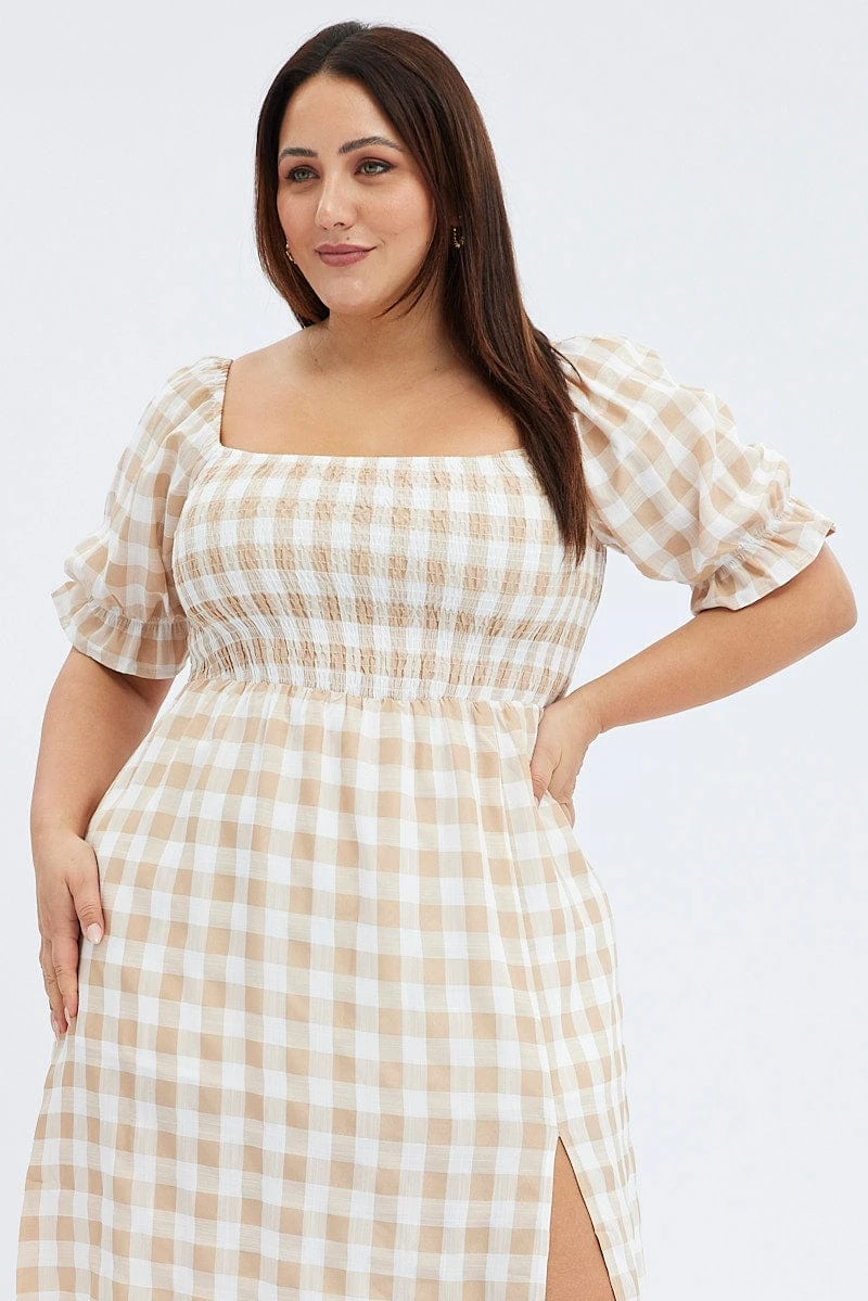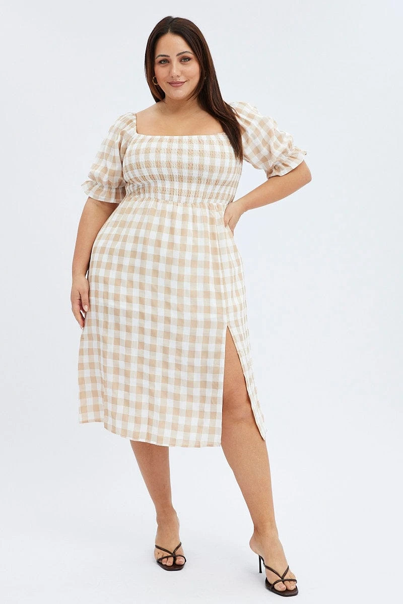 Be the first to review “Nude Check Midi Dress Split Front Large Gingham Check” Cancel reply