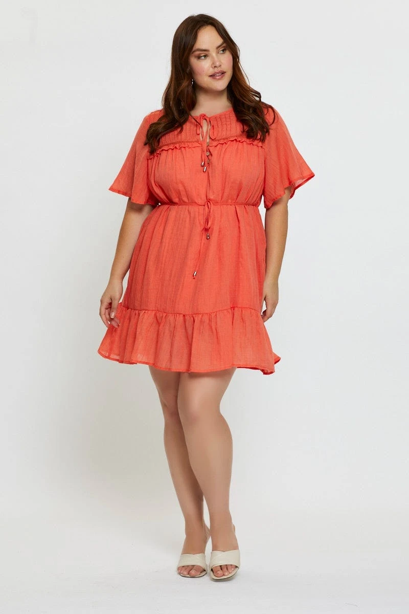 Feature: Button Detail, Frill Hem, Short Sleeves, Tie Detail