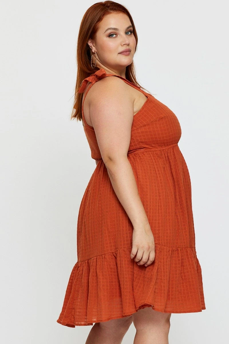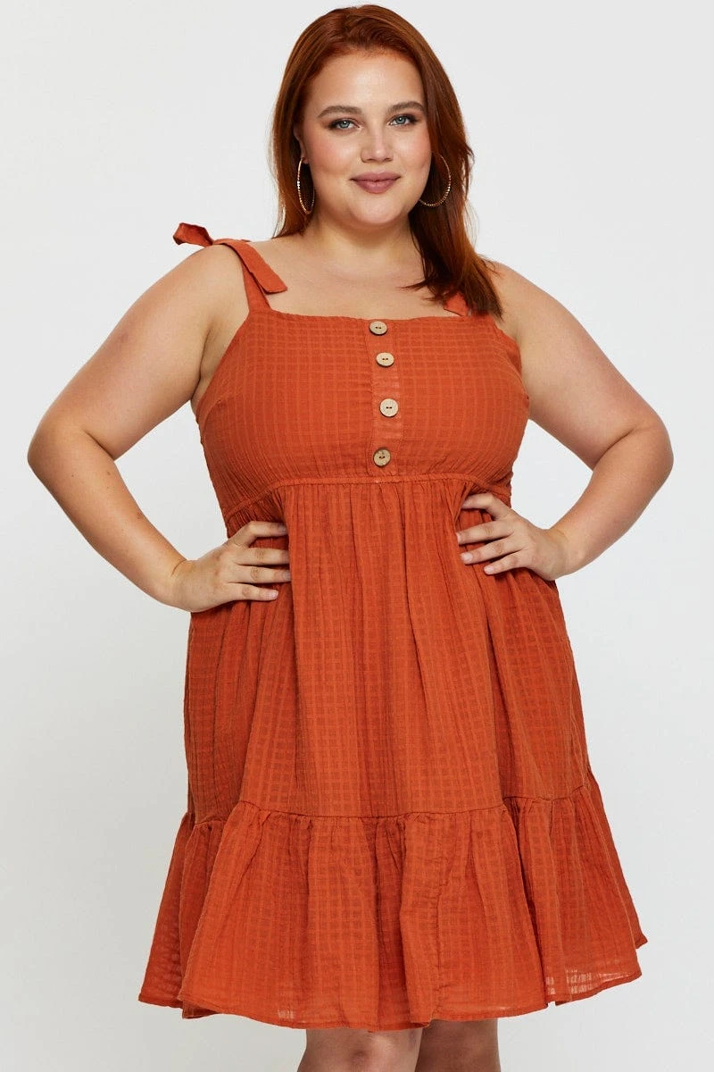 Feature: Button Detail, Textured Fabric, Tie Up Straps, Frill Hem