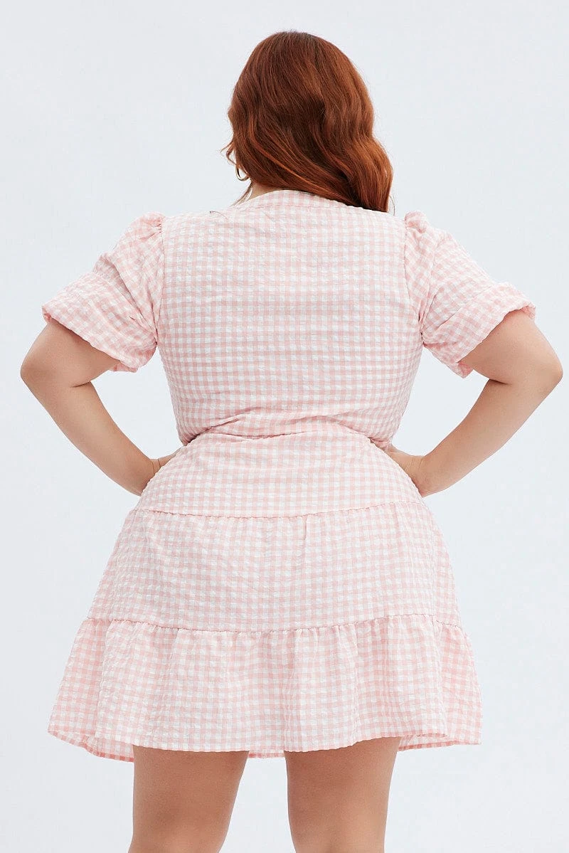 Be the first to review “Pink Check Shirt Dress Short Sleeve Tiered” Cancel reply