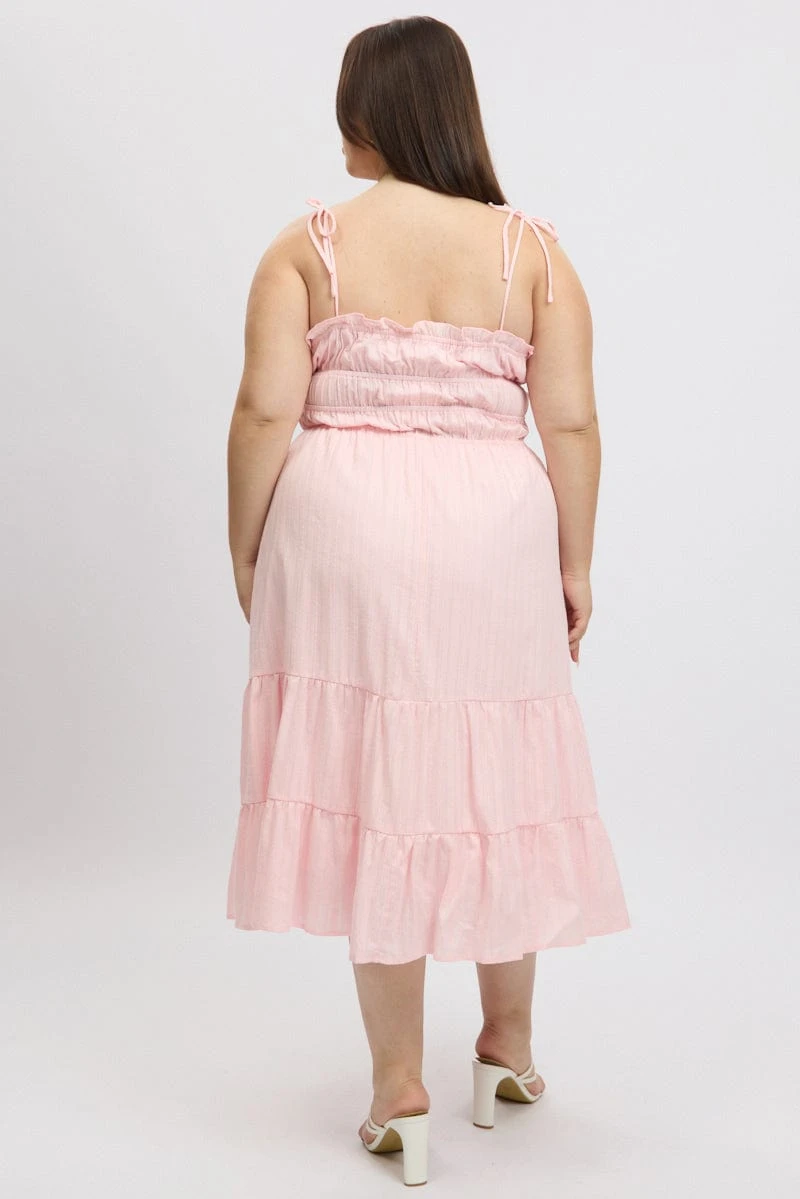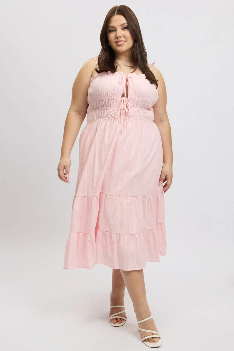 Be the first to review “Pink Midi Dress Sleeveless Tie Front Tiered Textured” Cancel reply