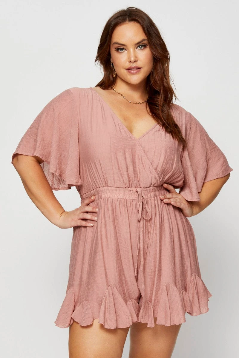 Feature: Ruffle Hem, Button Closure, Drawstring Detail, Short Sleeves