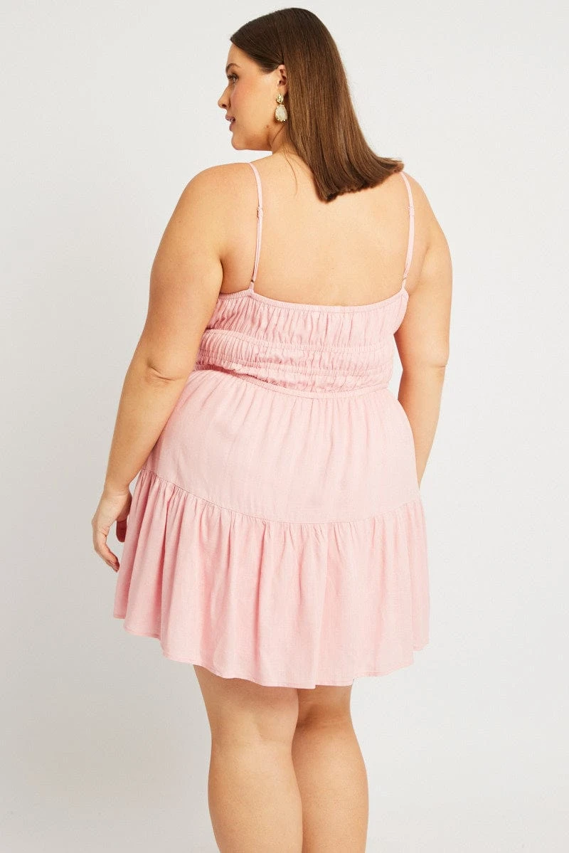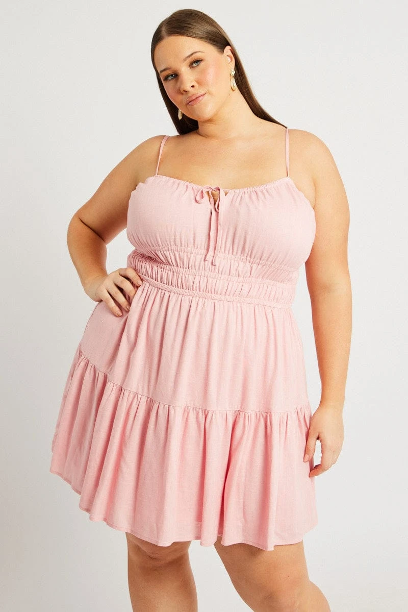 Be the first to review “Pink Strappy Frill Hem Linen Blend Minidress” Cancel reply