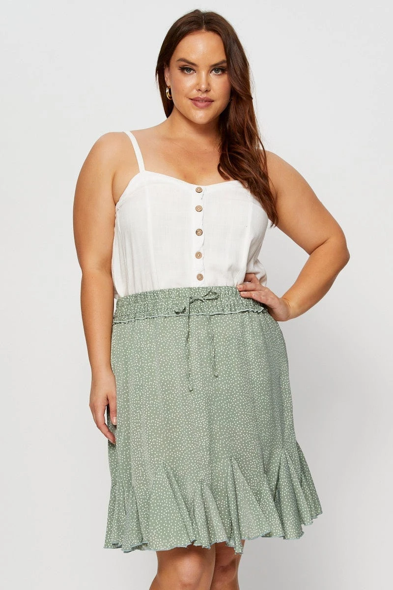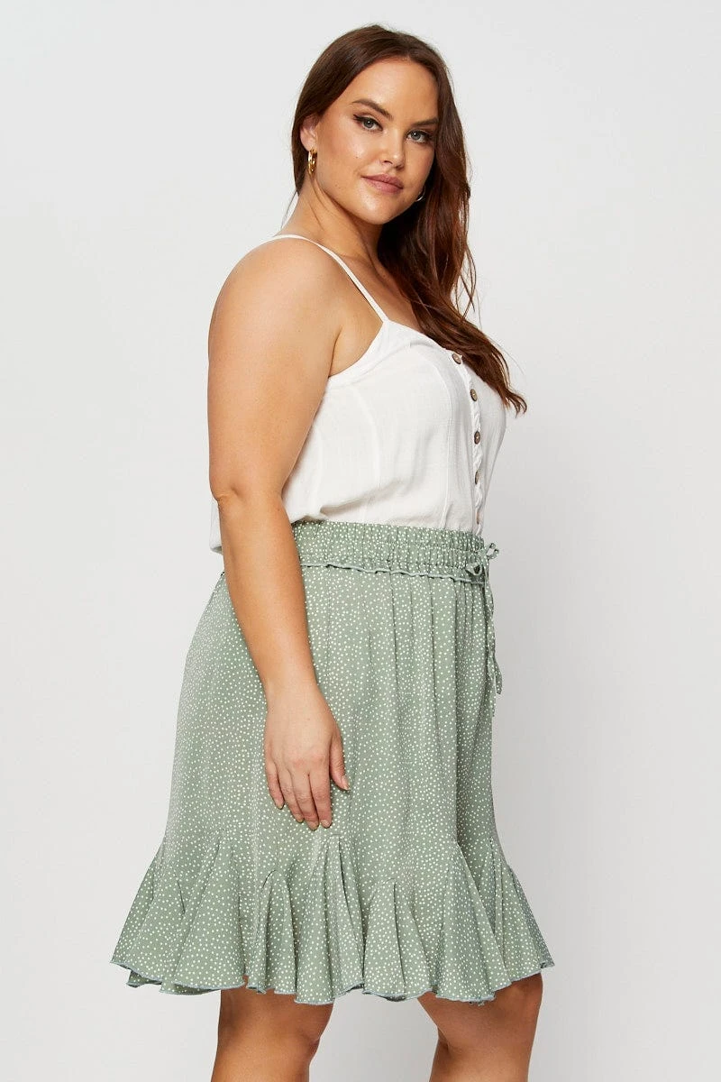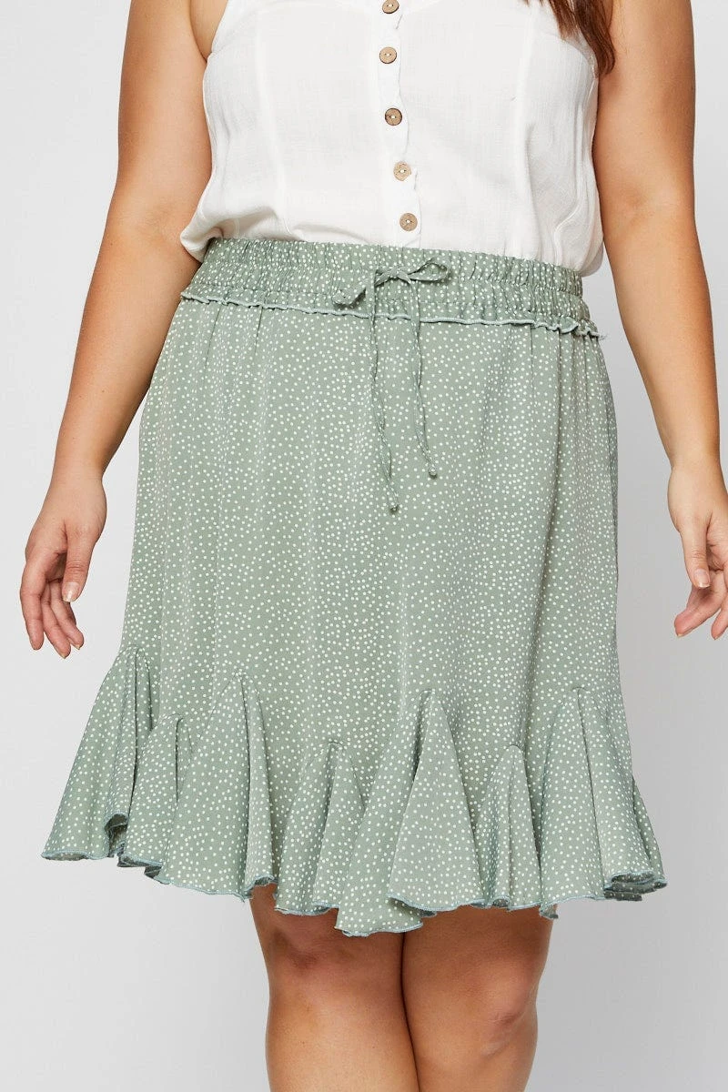 Feature: Polka Dot Print, Ruffle Hem, Tie Detail, Elasticised Waistband