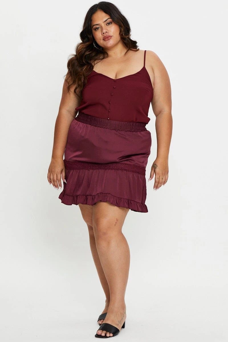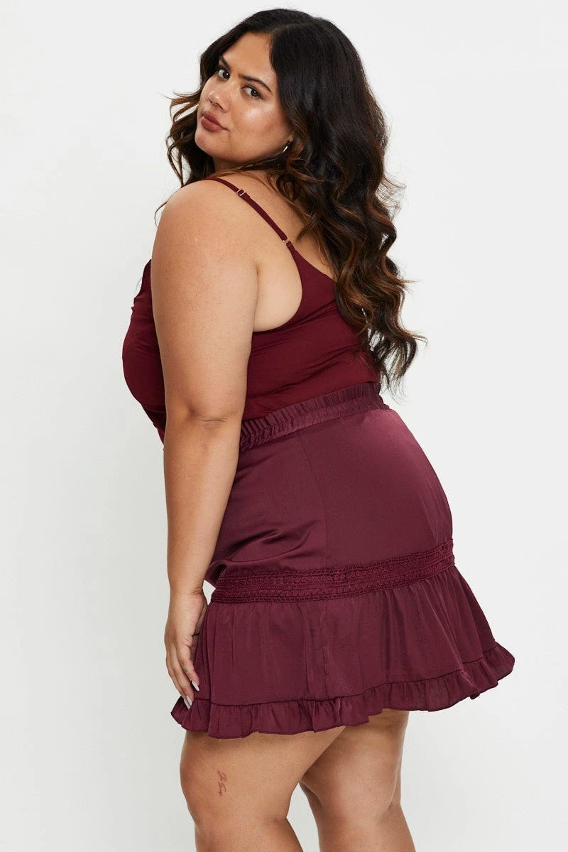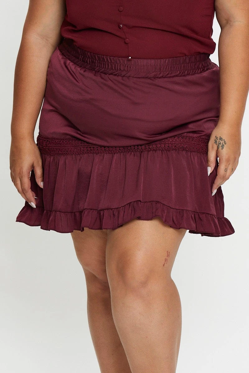 Features: Lace Detailing, Mini Length, Ruffle Hem, Elastic Waist
