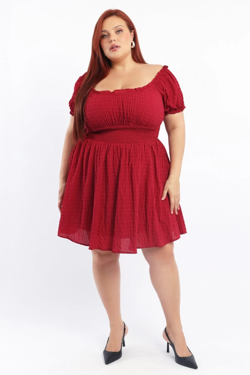 Be the first to review “Red Textured Shirred Waist Frill Sleeve Minidress” Cancel reply