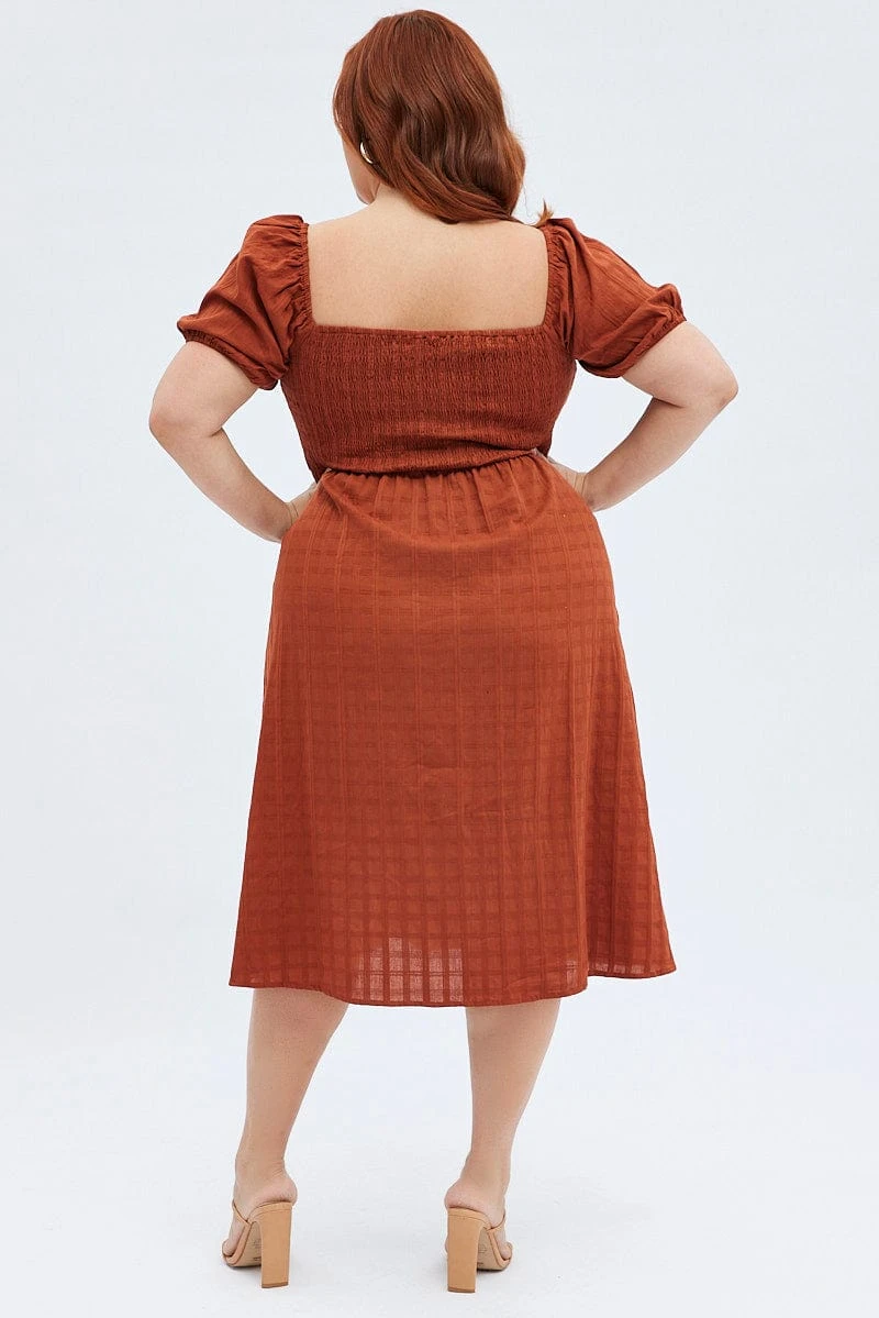 Be the first to review “Rust Midi Dress Textured Puff Sleeve” Cancel reply