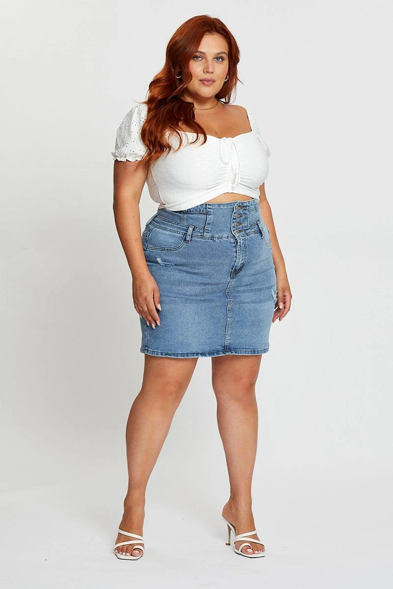 Feature: Ruched Front, Puff Sleeves, Eyelet Detail, Cropped