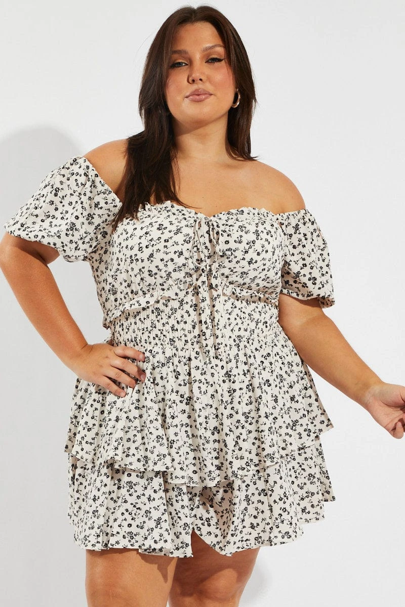 Be the first to review “White Ditsy Frill Bust Playsuit Layer Hem Puff Sleeve” Cancel reply