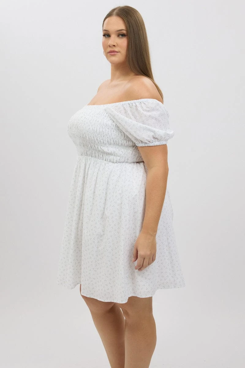 Be the first to review “White Ditsy Shirred Minidress” Cancel reply