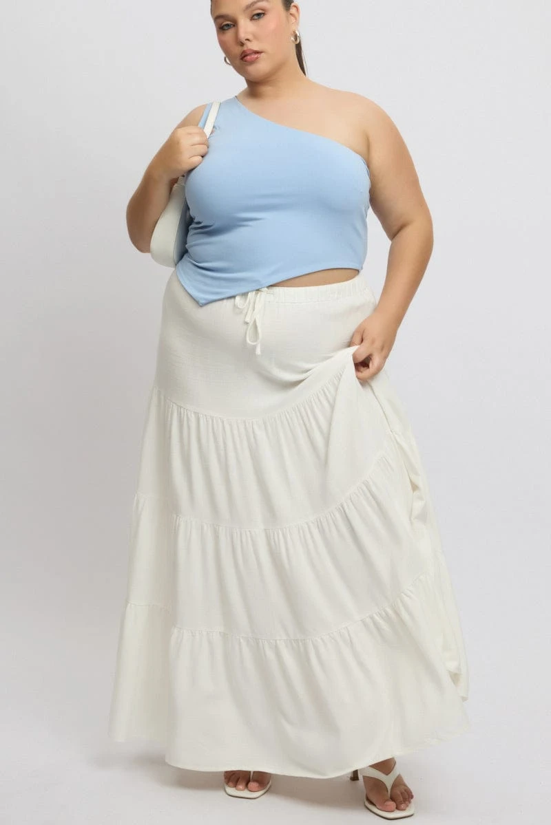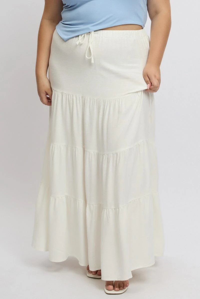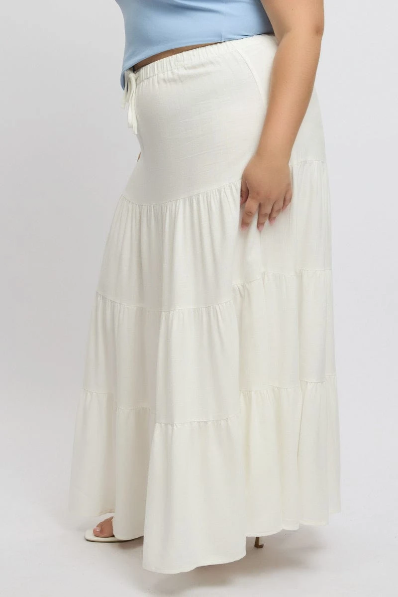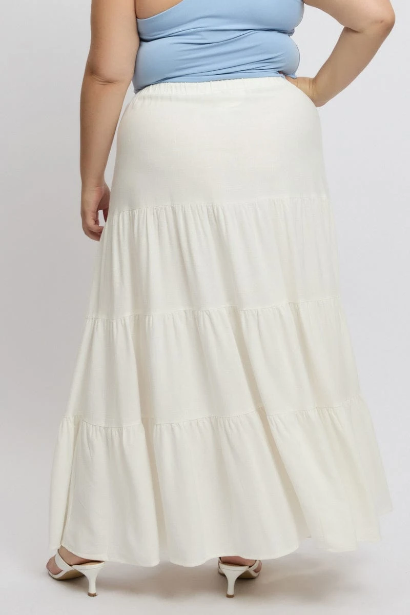 Be the first to review “White Elastic Waist Tiered Linen Blend Maxiskirt” Cancel reply