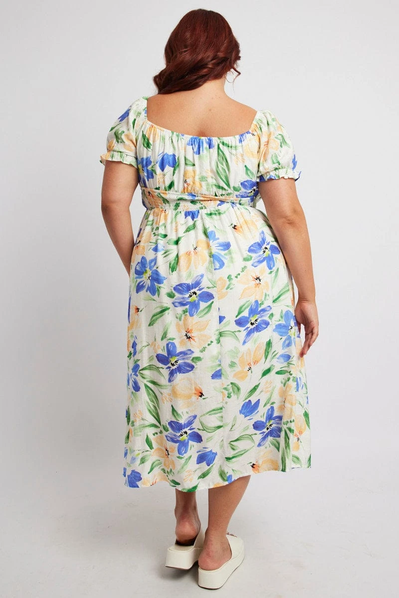 Be the first to review “White Floral Midi Dress Short Sleeve Ruched Bust” Cancel reply