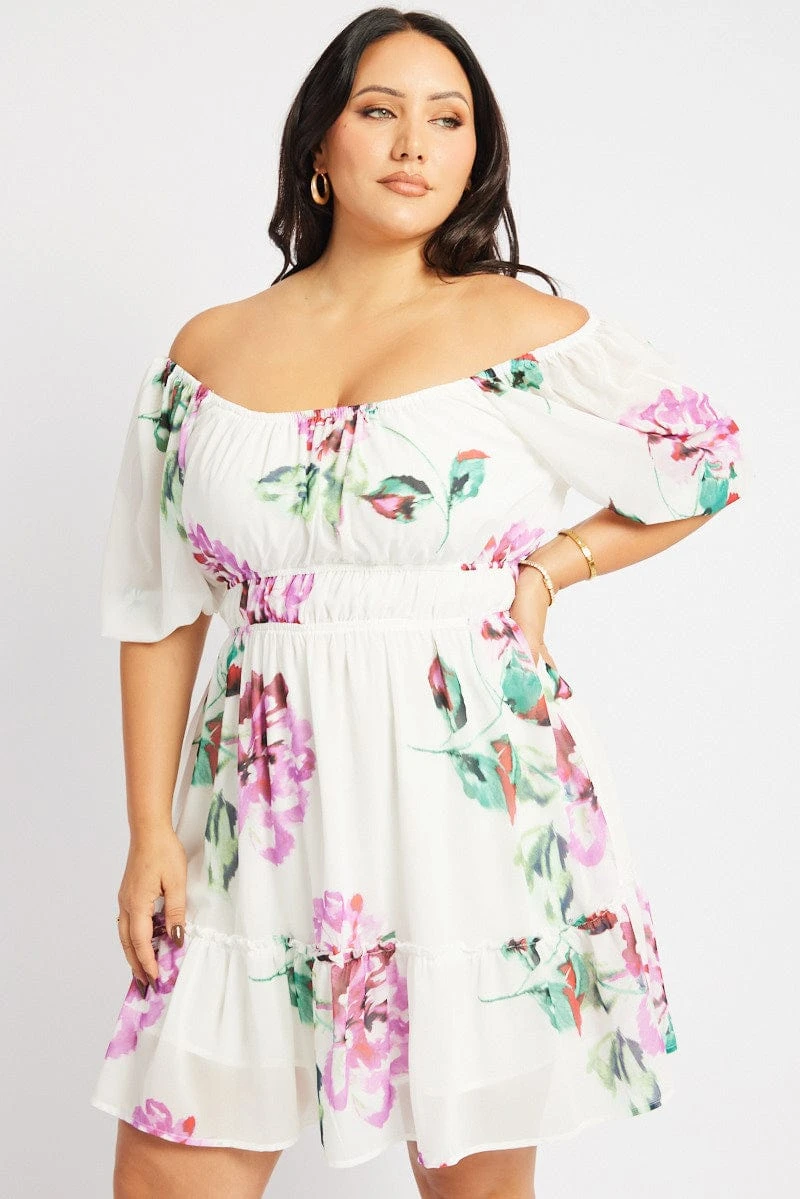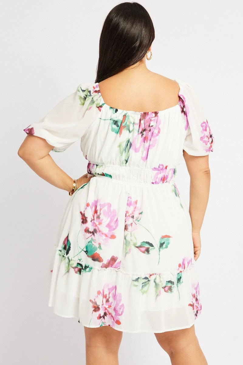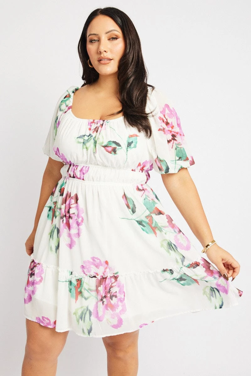 Be the first to review “White Floral Puff Sleeve Scoop Neck Gather Waist Minidress” Cancel reply