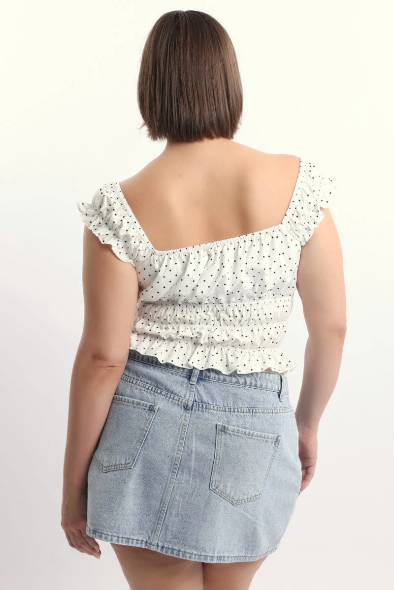 Be the first to review “White Polka Dot Crop Top Short Sleeve Ruched Bust” Cancel reply