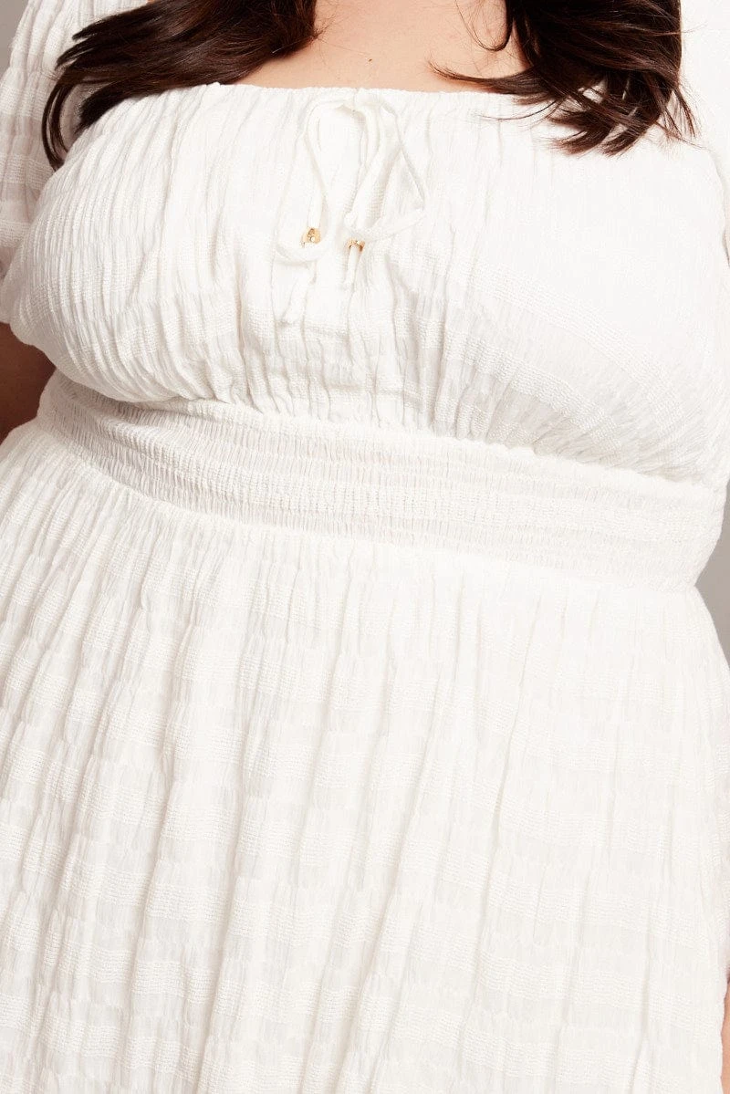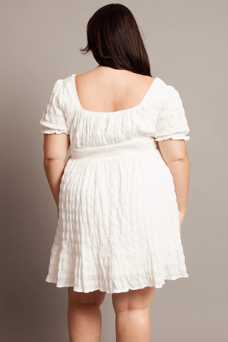 Be the first to review “White Textured Check Cotton Blend Shirred Waist Mini Dress” Cancel reply