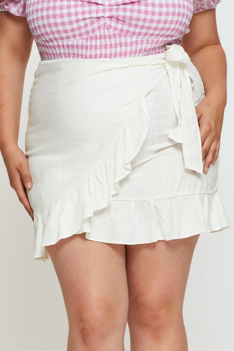 Feature: Frill Detail, Back Zipper, Wrap Design, Mini Length