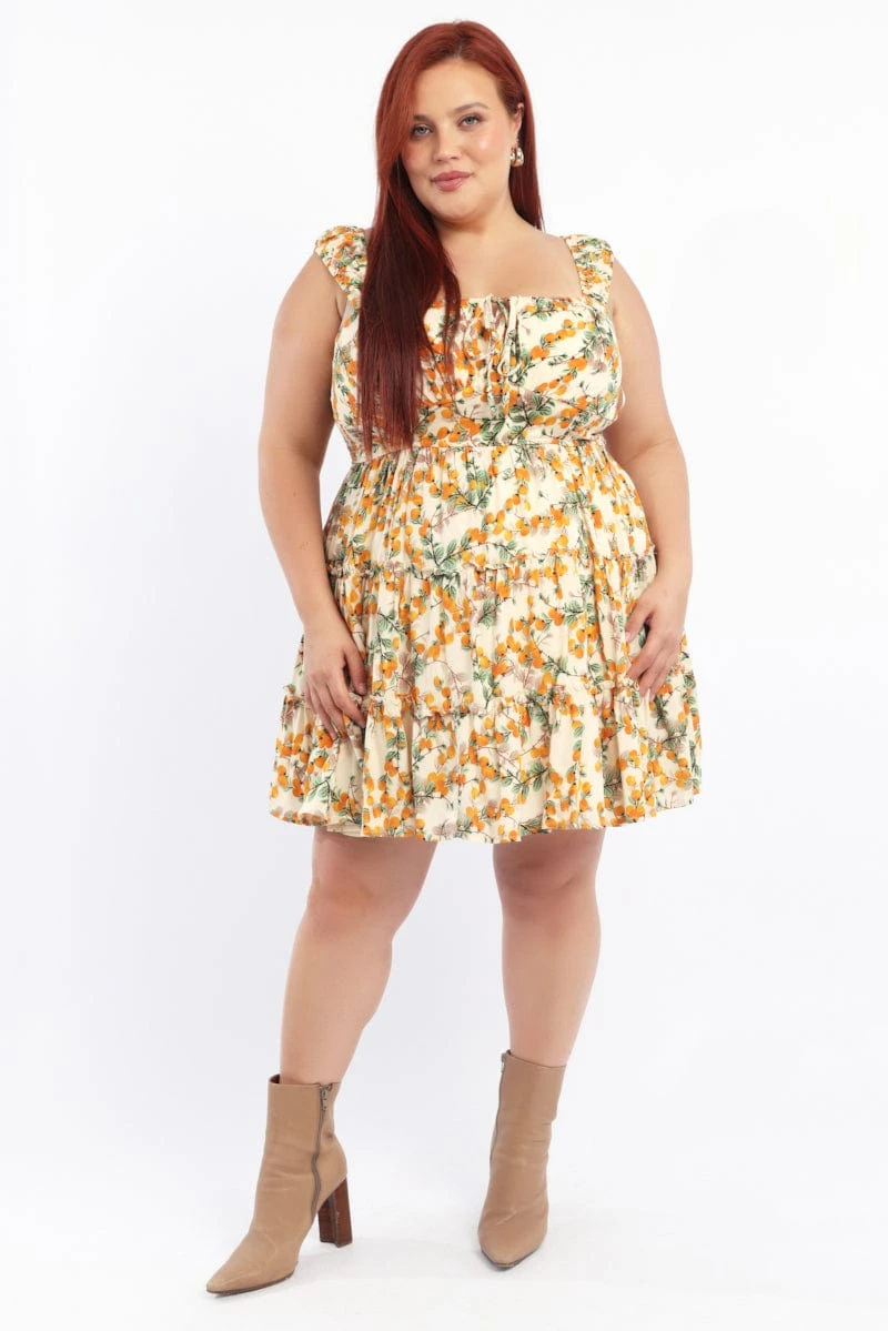 Be the first to review “Yellow Abstract Fruit Print Shirred Waist Minidress” Cancel reply
