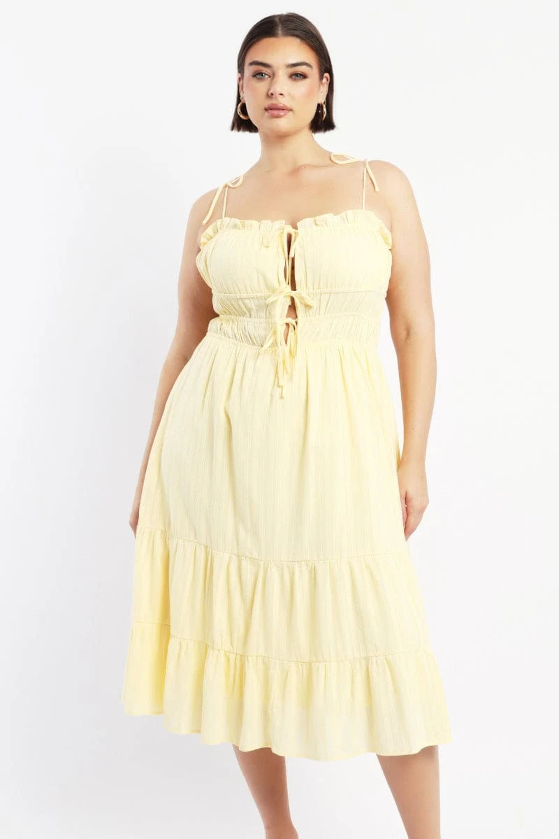 Be the first to review “Yellow Midi Dress Sleeveless Tie Front Tiered Textured” Cancel reply